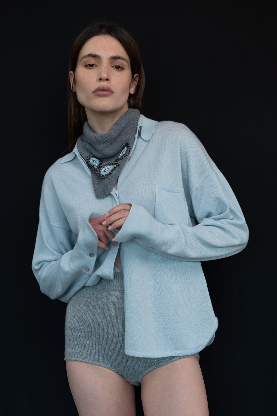 Lule shirt is woven from pure cashmere yarn and finished with elegant cuffs and chest pocket.