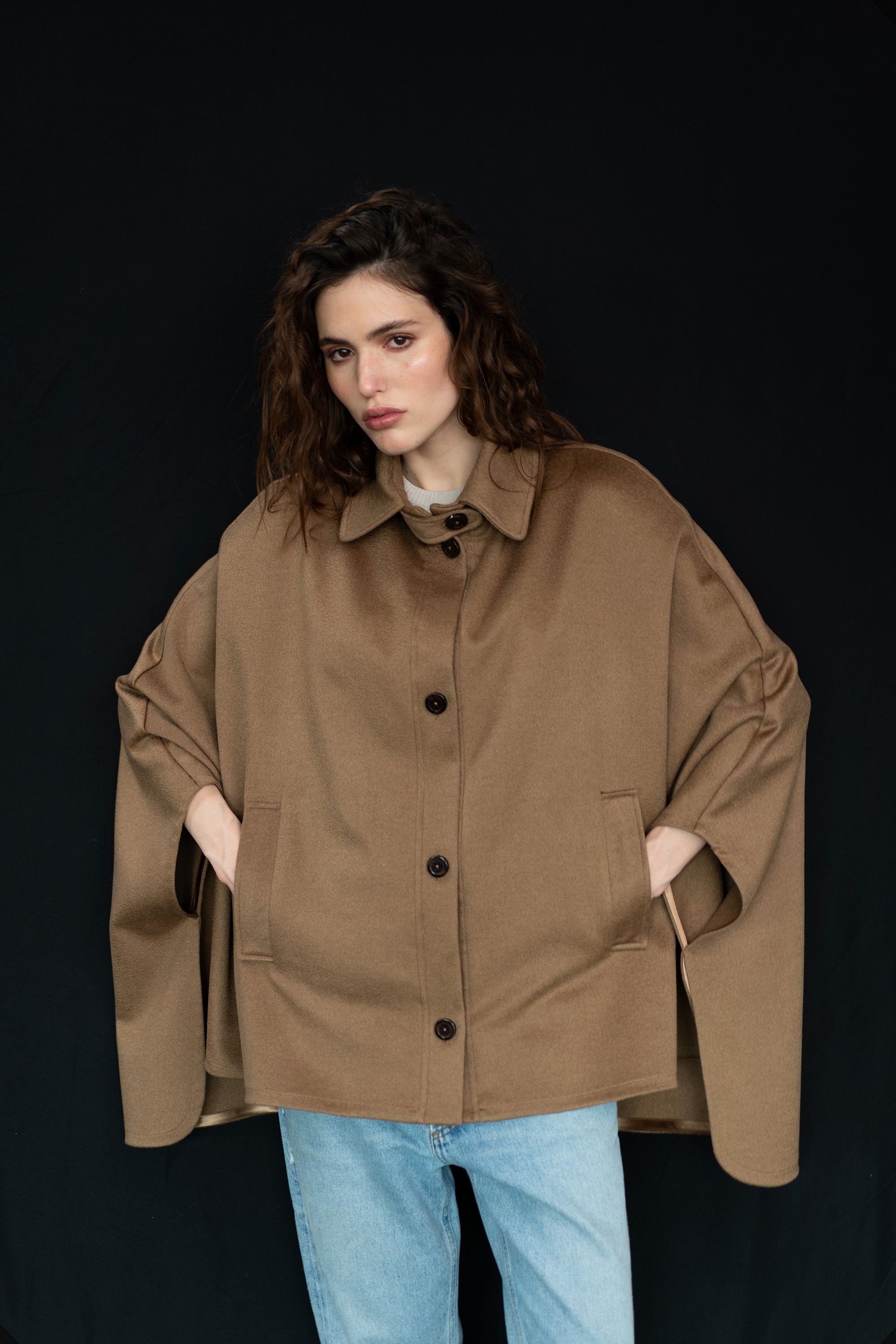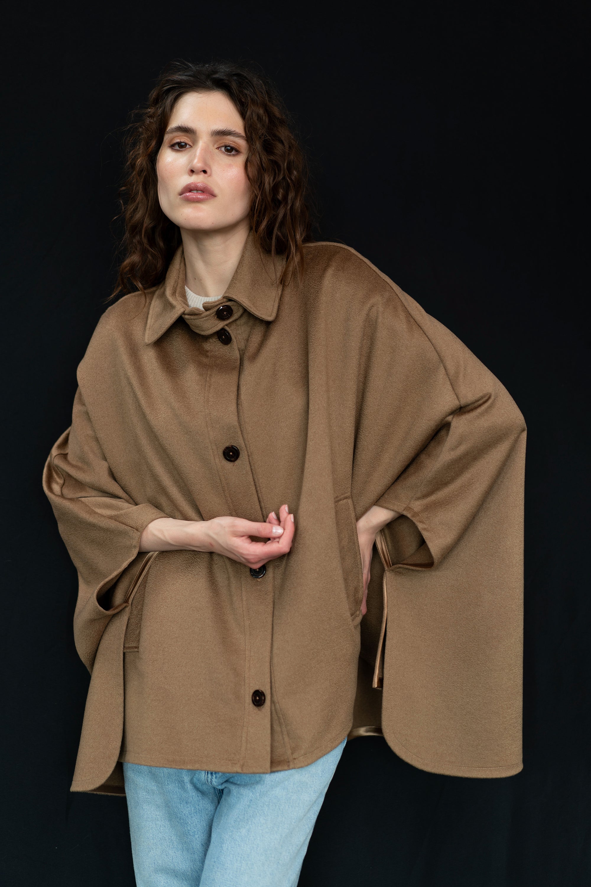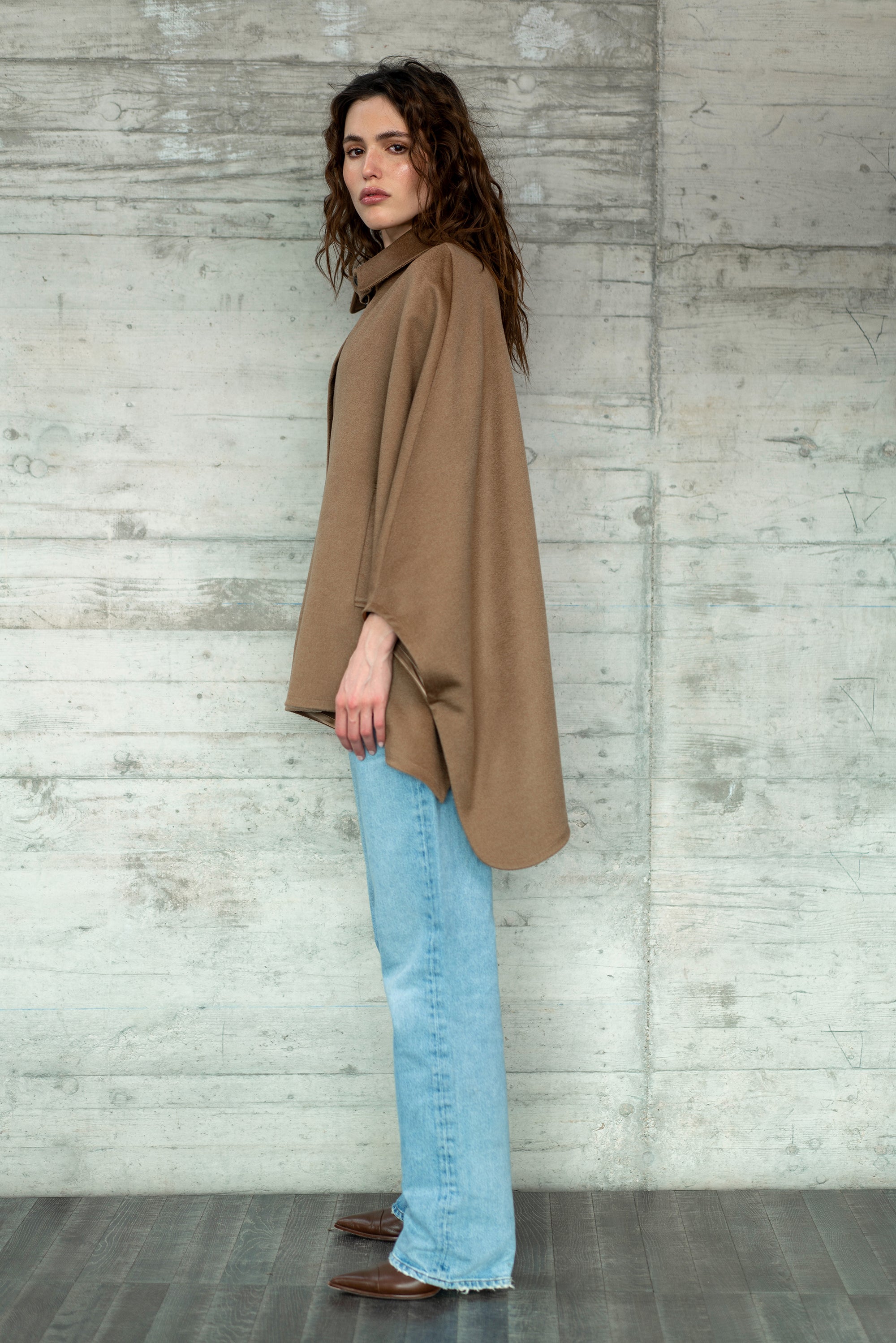 cashmere cape tailor made in Italy. The garment is made with the most precious