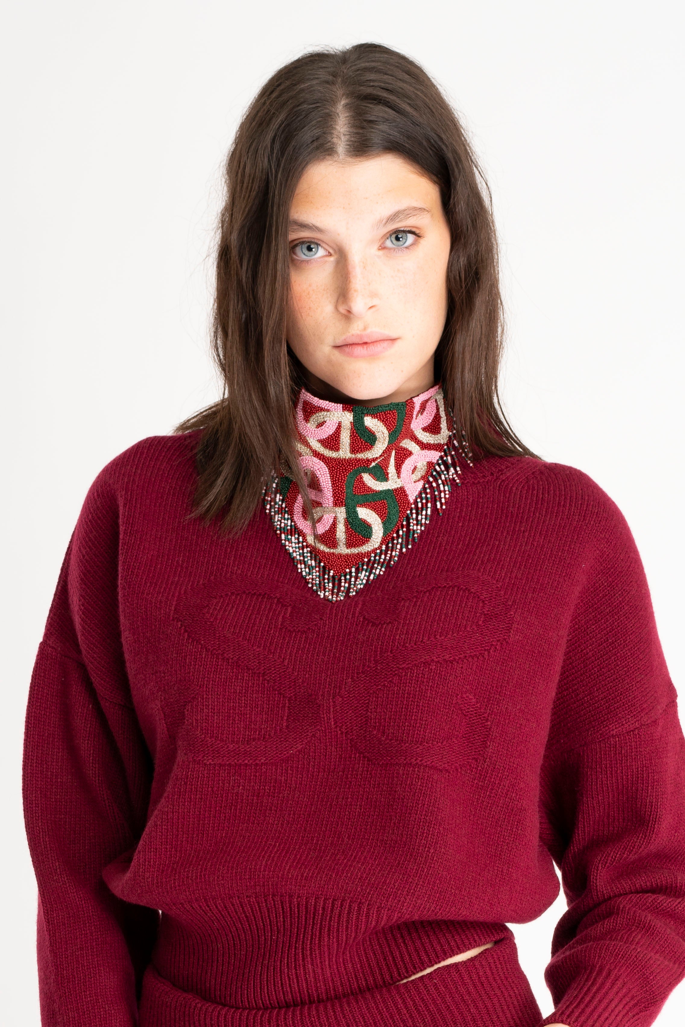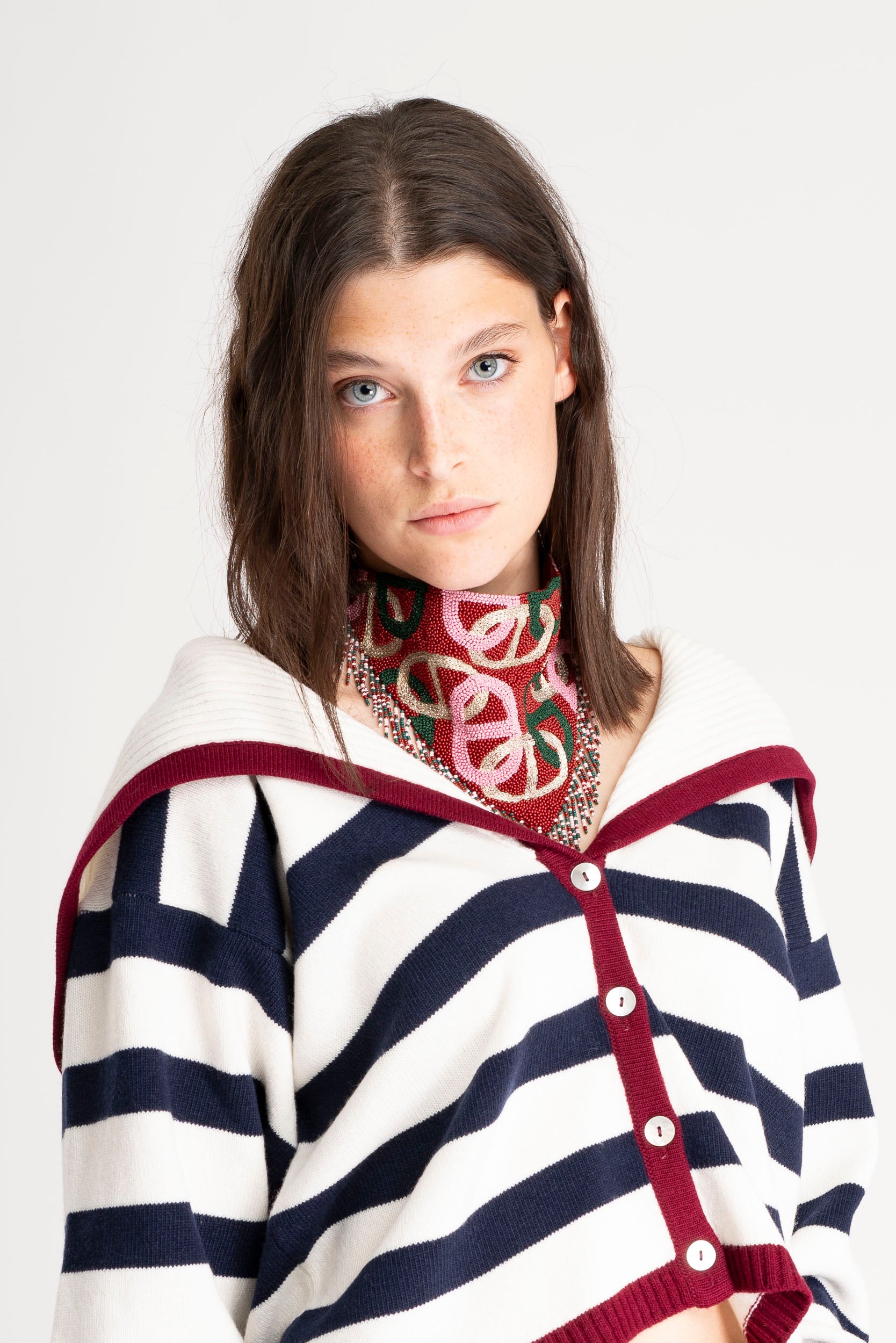 A refined embroidered silk bandana featuring bold geometric motifs, blending Hermes inspired elegance with a western spirit.